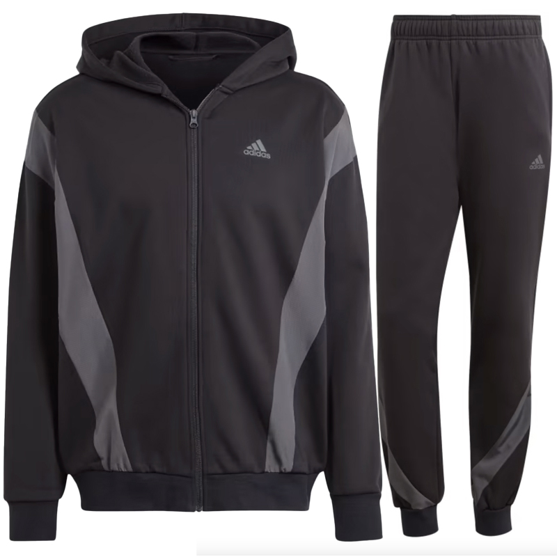 1 recensione per Adidas Tuta Completa Sportwear Fleece Hooded Nero Grigio Uomo Cappuccio Felpata